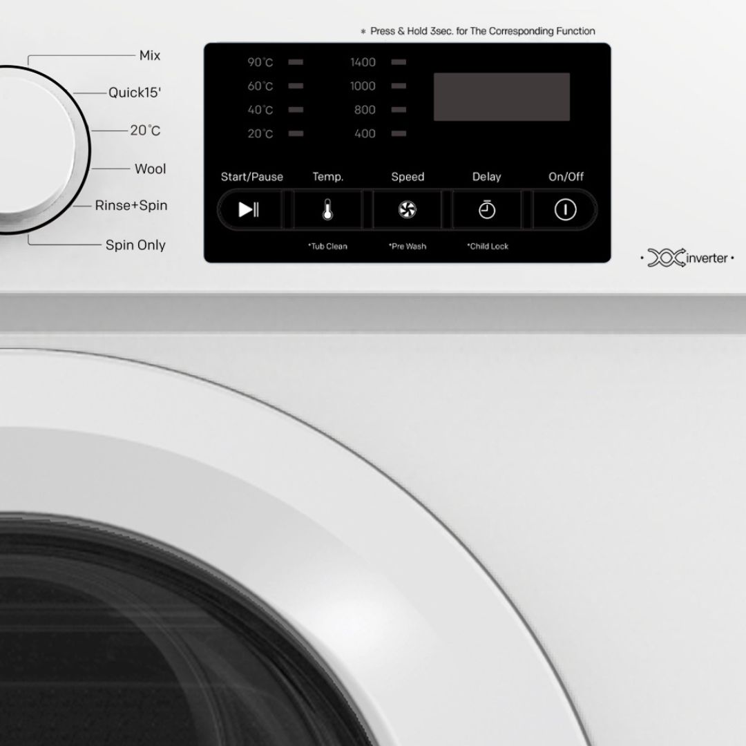 LED დისპლეი, სწრაფი რეცხვა, ბავშვებისგან დამცავი საკეტი და ბარაბნის გაწმენდა სრული თანამედროვე ფუნქციებით.